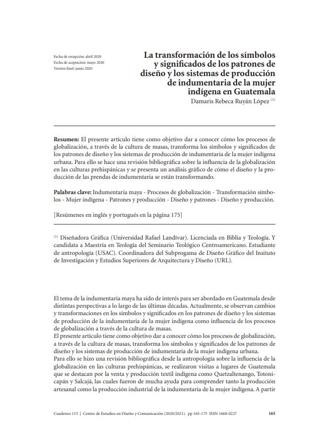 La transformación de los símbolos y significados de los patrones de diseño y los sistemas de producción de indumentaria de la mujer indígena...